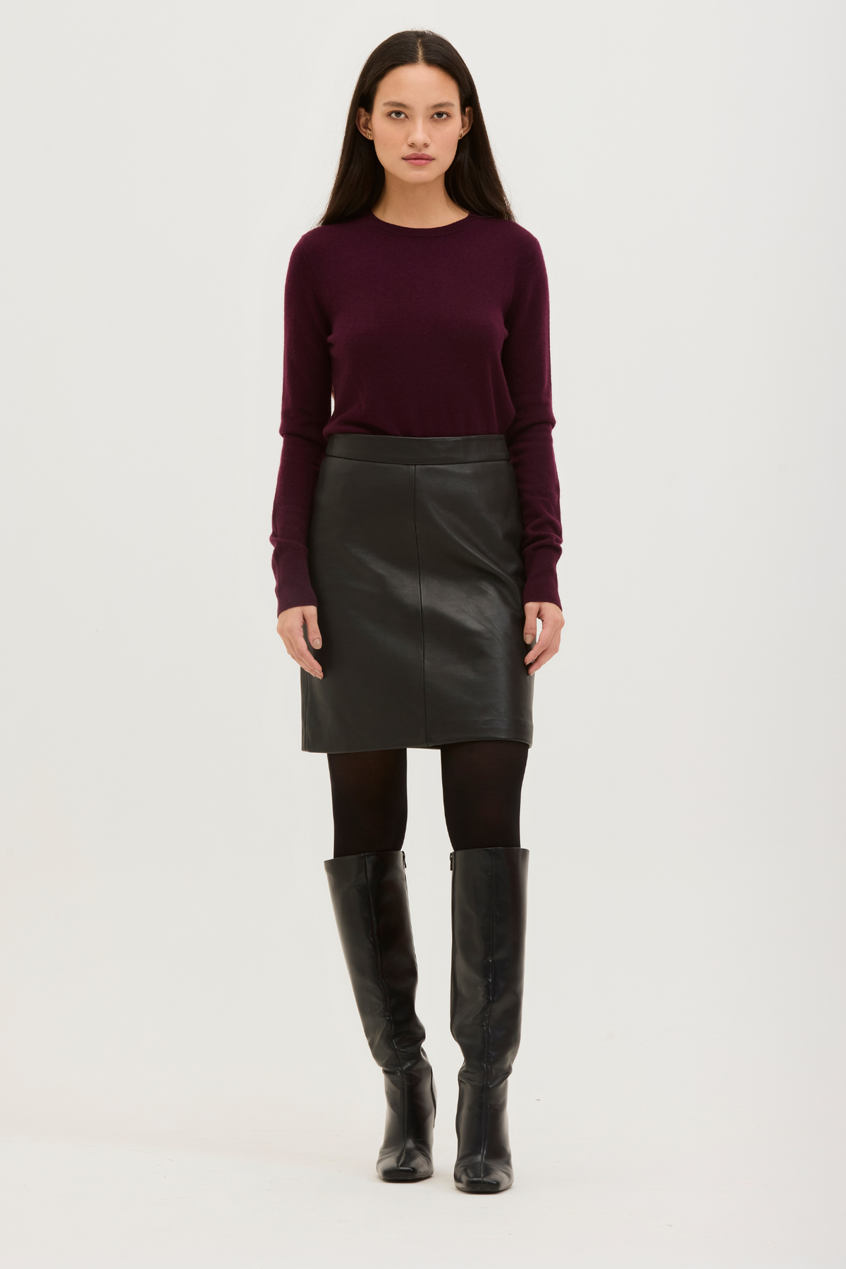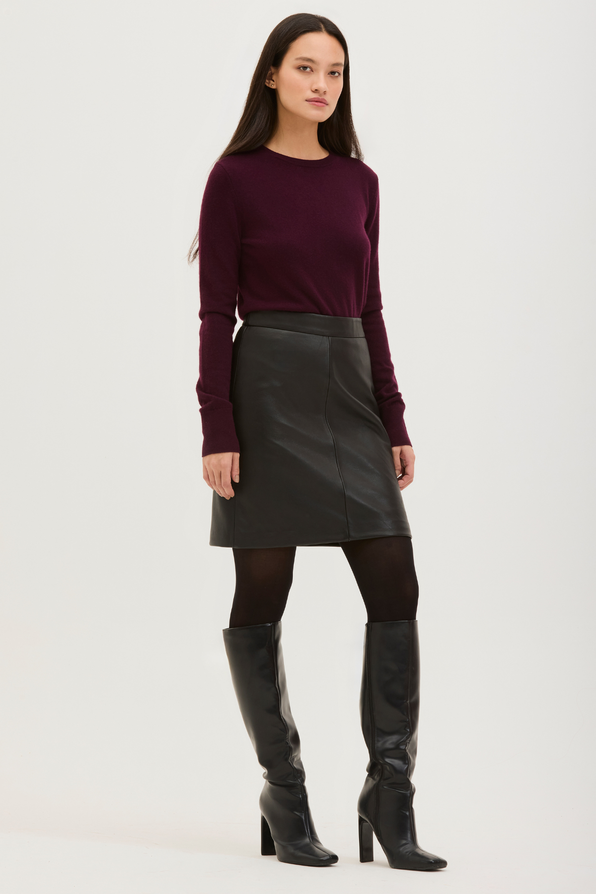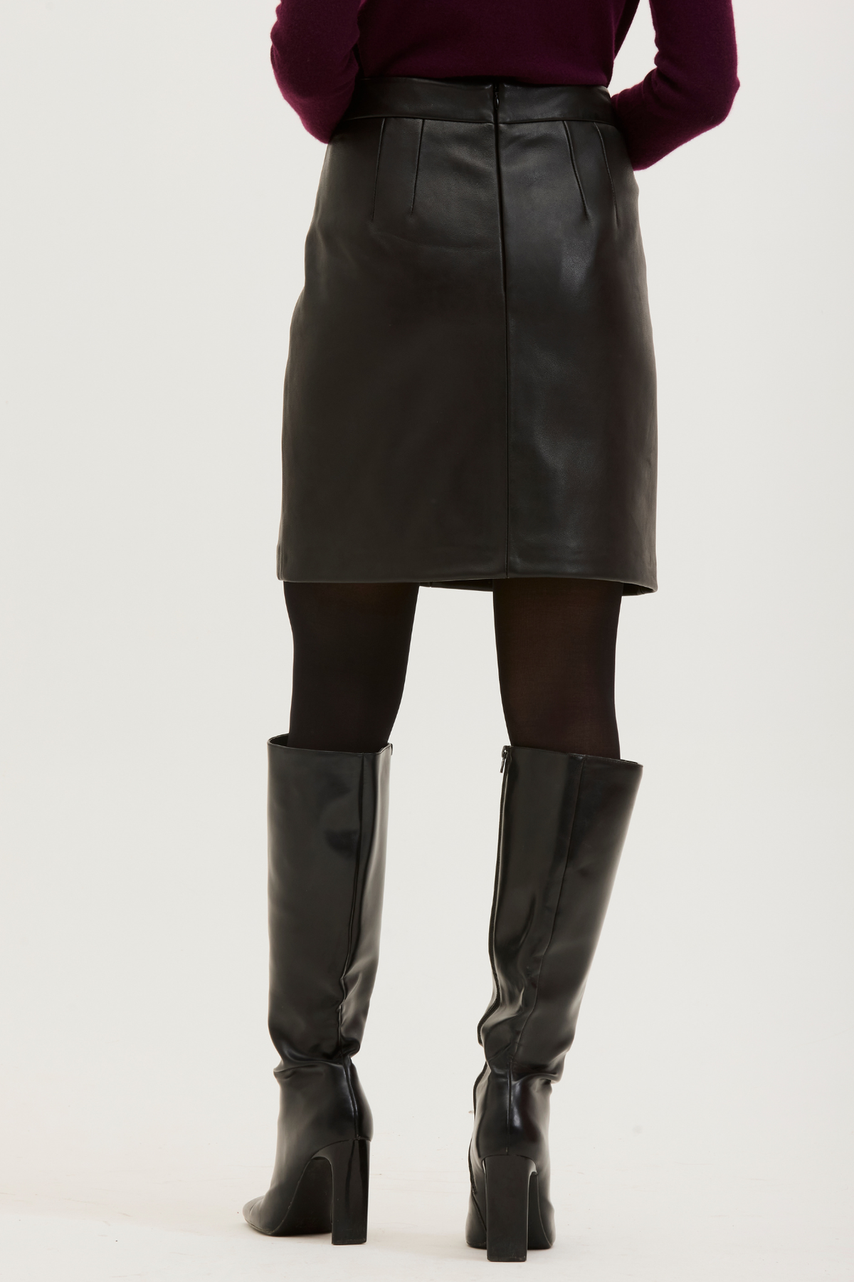 VELLAH. Elevated and endlessly versatile, the VELLAH skirt is classic fit crafted from our genuine lamb leather, designed with a clean, streamlined silhouette, it features a discreet invisible back zipper and with a front and back seam.