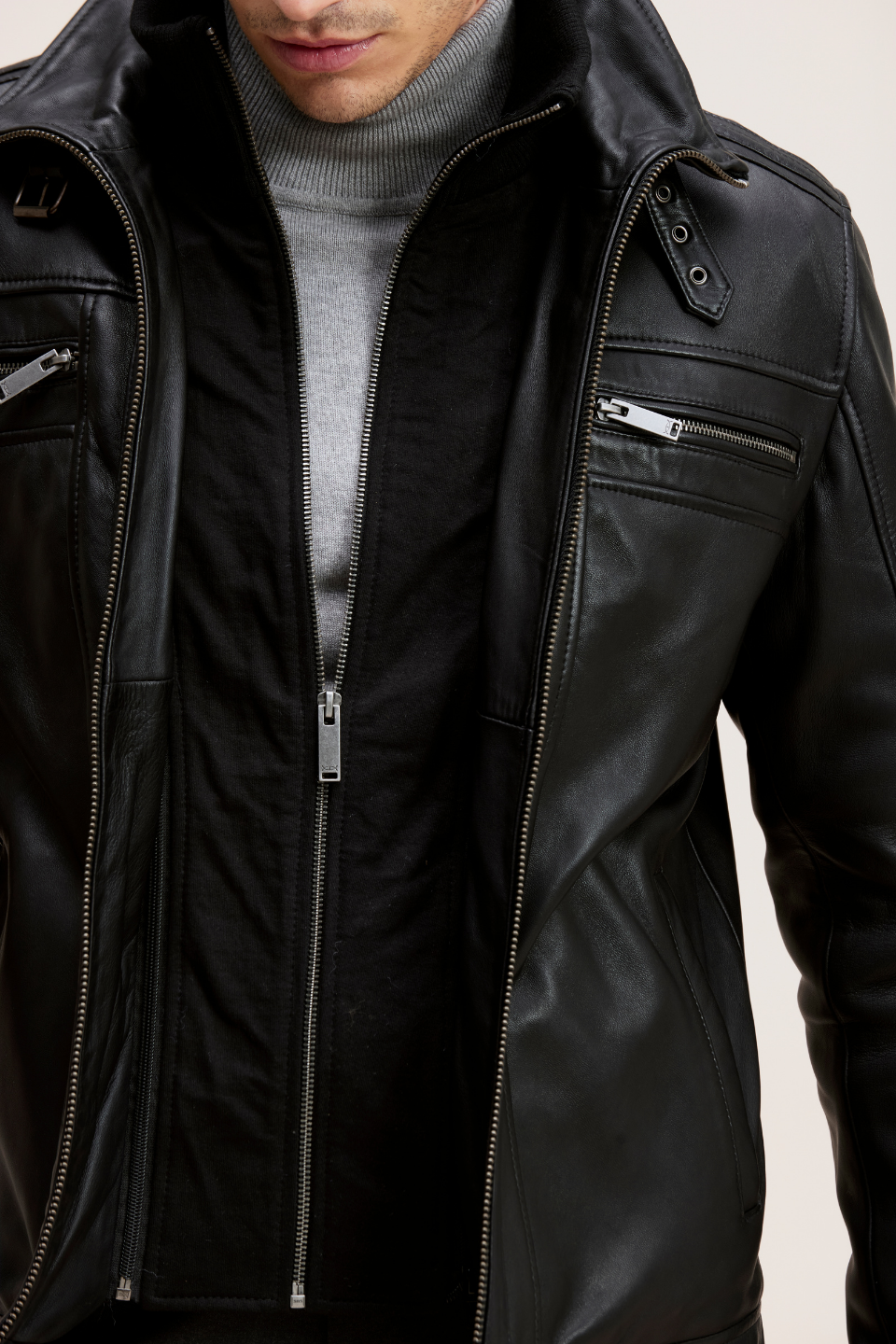 This Fall, our top-selling and versatile HAYDEN jacket returns, once again. Crafted in our premium lamb leather, the functional design of this style includes a zip-out knit bib that can be kept in or zipped out, as the weather dictates and a quilted liner, for added insulation on the coolest days. Additional features include zipped chest pockets, quilted elbow panels, front welt pockets and buckled collar closure. Handsome, versatile and styled for transitional Canadian seasons, HAYDEN will elevate your casual look to new standards.