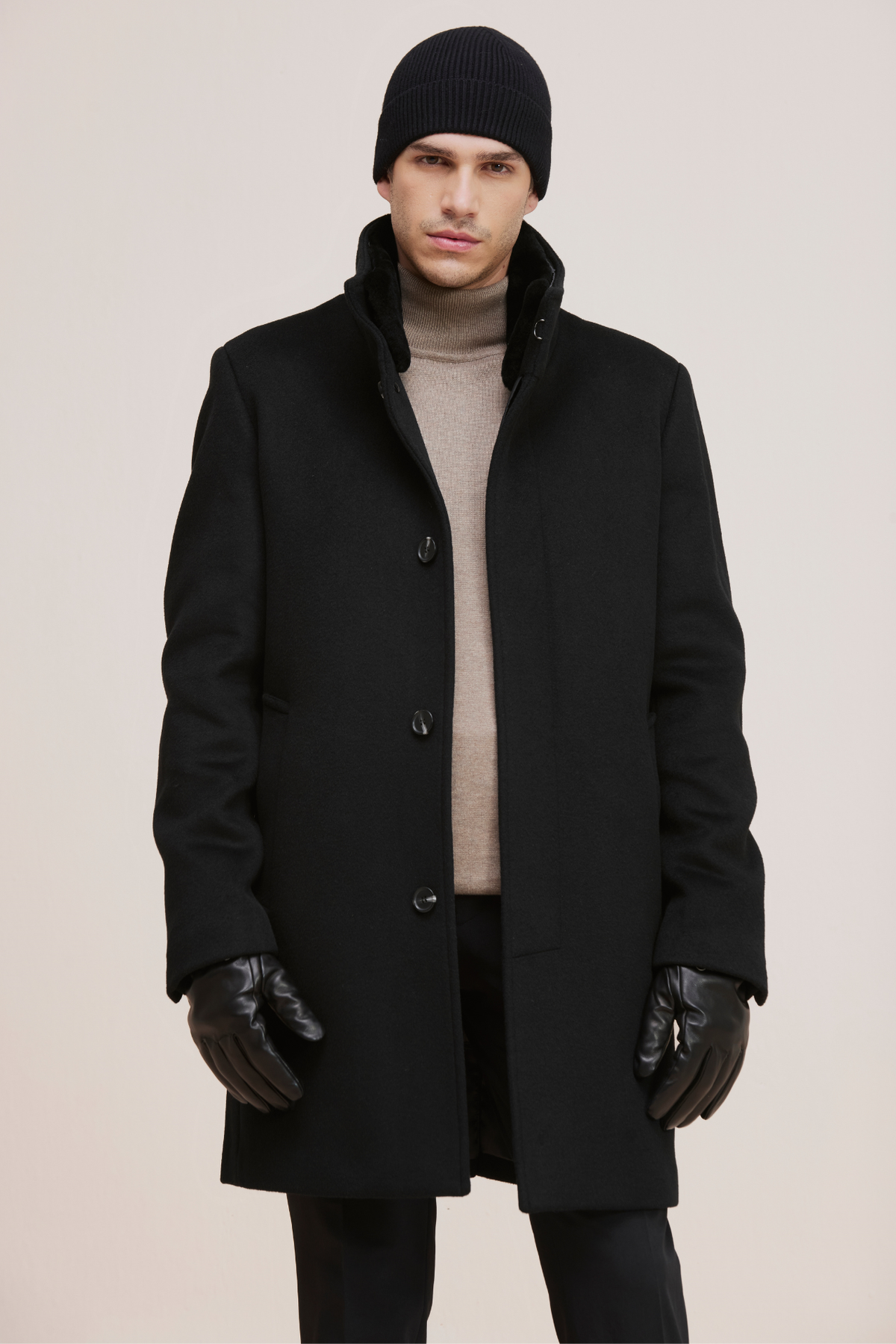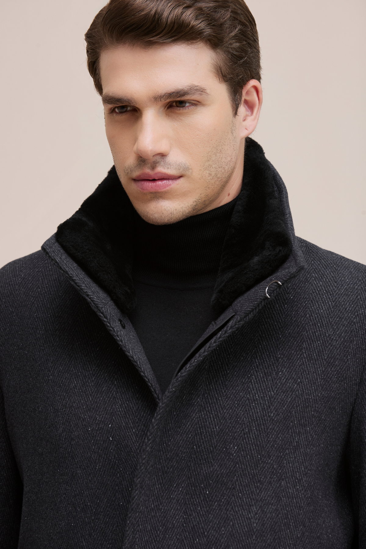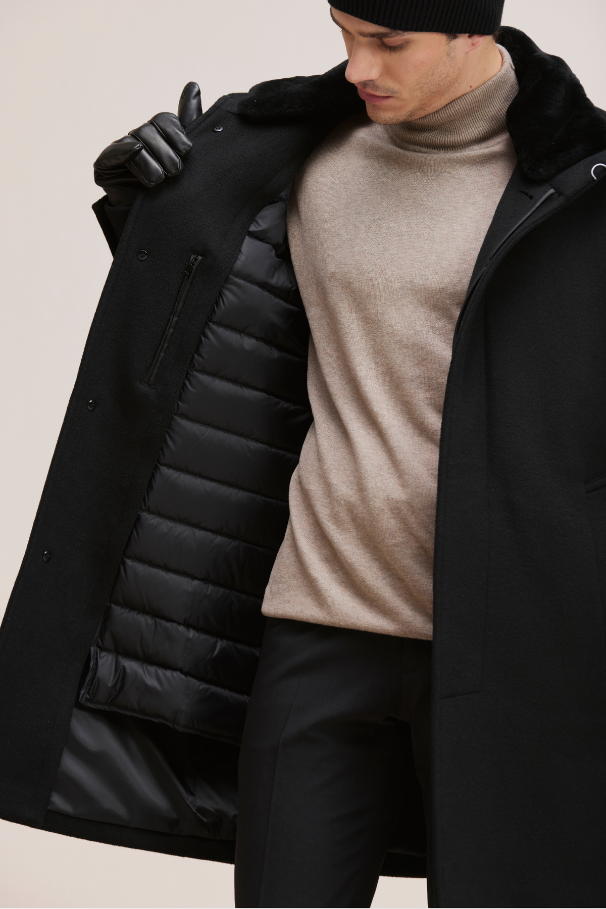 A classic take on a men’s quintessential overcoat, QUENTYN offers a fresh approach to cold weather dressing. Handsomely fabricated in imported wool-blend fabric, its design features a detachable genuine sheepskin collar, detachable insulated liner, and a front button closure.  The versatile lightweight detachable insulated liner acts as an added barrier against the cold, while providing thermal insulation.  An ideal topper for your business dress and casual needs.