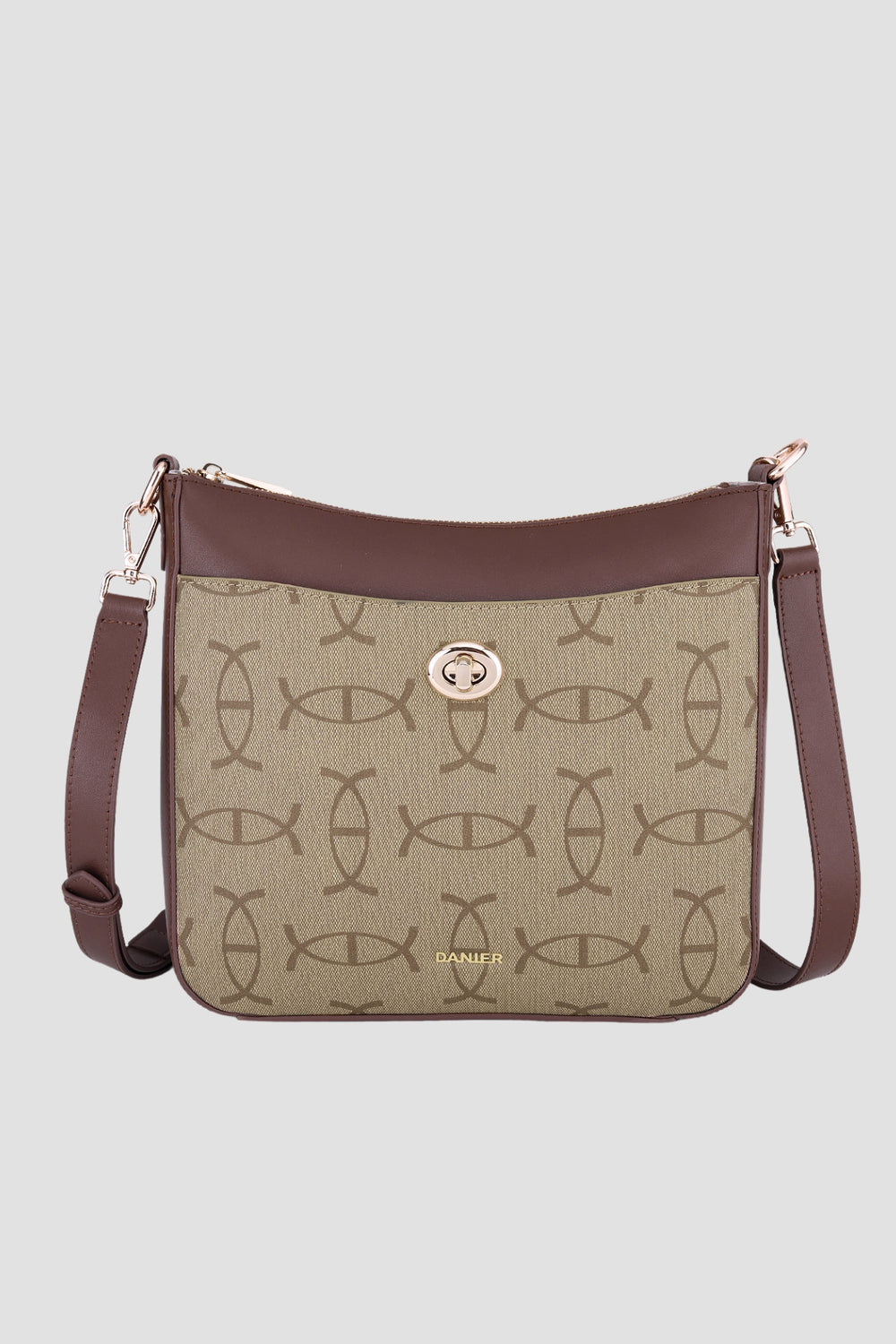 Our PHILIPA shoulder bag gives any outfit a polished finishing touch.  Crafted in our monogram print coated poly-cotton and trimmed with genuine leather, this silhouette features a front exterior turn-lock closure pocket and a back zip closure pocket that are sure to keep you organized.