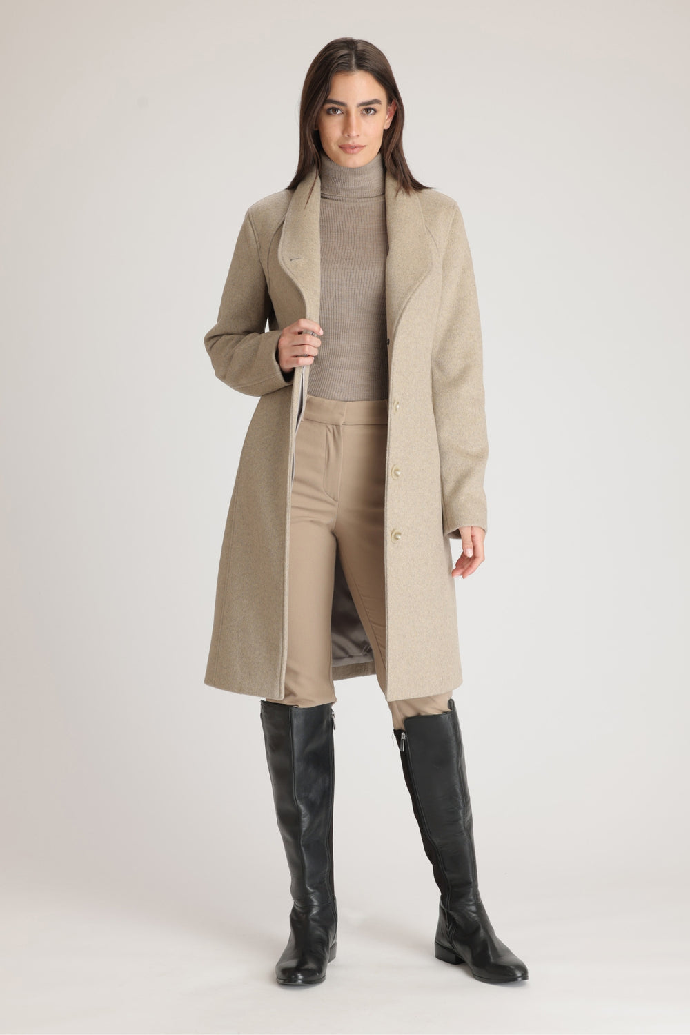 Our exquisite DRIELLE coat expertly tailored from a luxe wool blend, is a wardrobe staple. With a slim fit that defines the feminine graceful shape and the enhancing mid length, this coat is designed to create a stunning and flattering silhouette. A one of kind coat that can be paired perfectly for both workwear and special nights out.