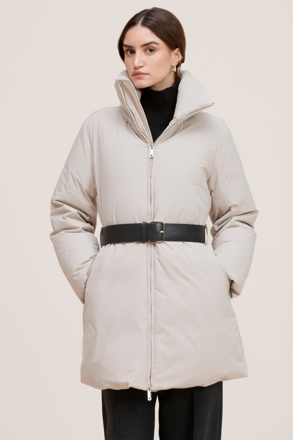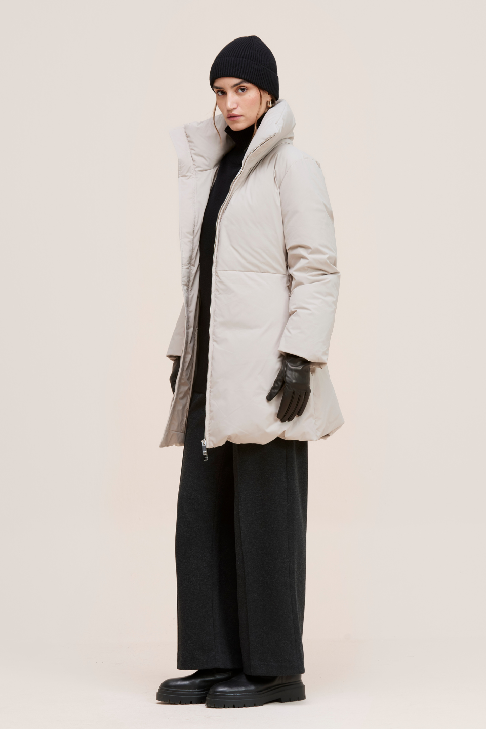 ELISEH. Designed to balance warmth, style, and functionality. It’s filled with duck down and feather blend for lightweight insulation and lasting comfort. Finished with soft inner cuffs and sleek zipper pockets, Eliseh blends timeless elegance with modern practicality.