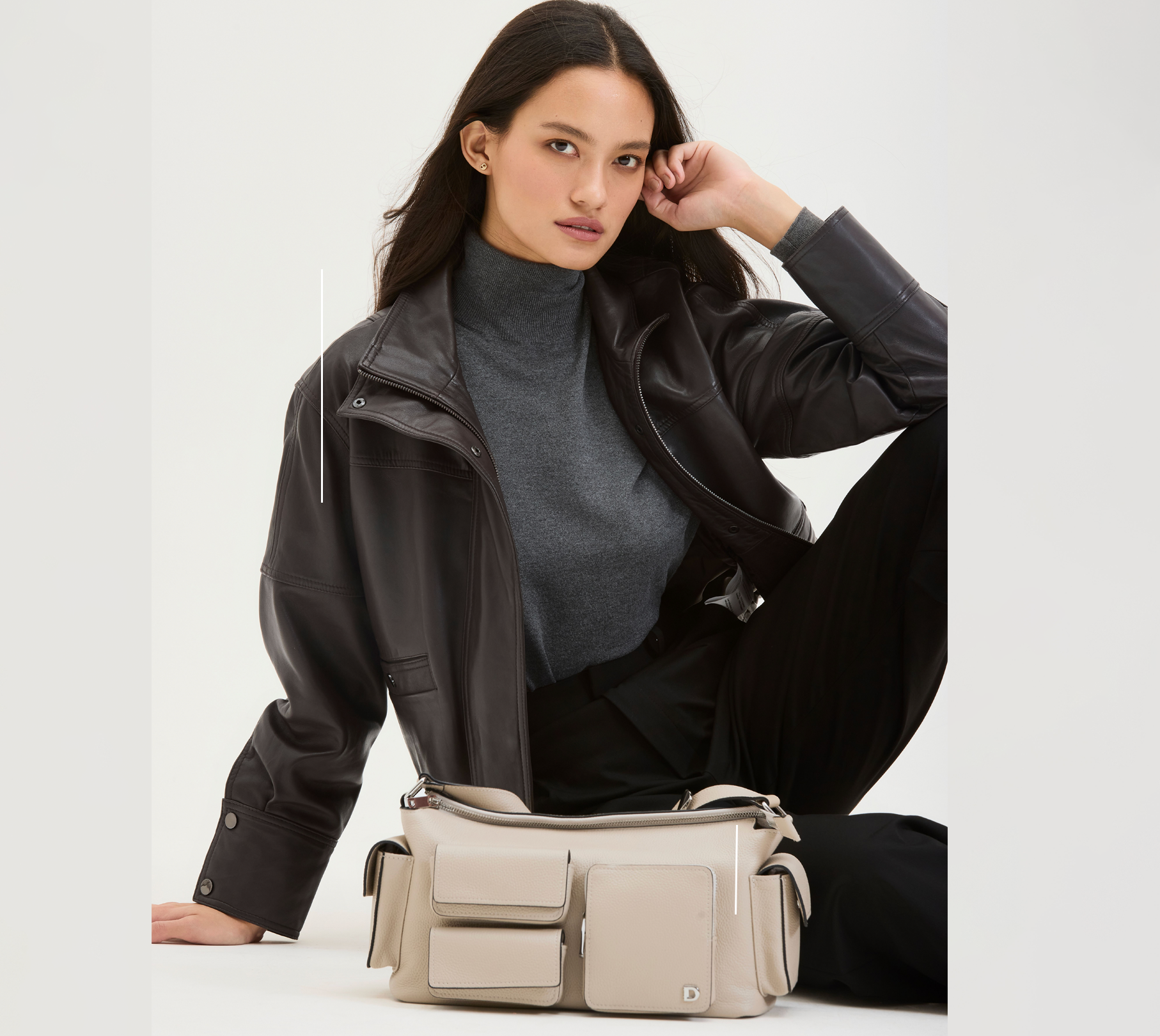 This season, leather takes centre stage in soft suiting, sculpted outerwear, and crossbodies made to move through changing days.