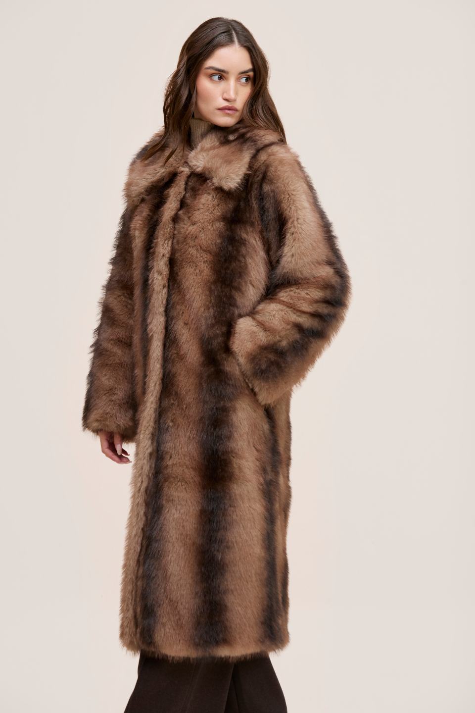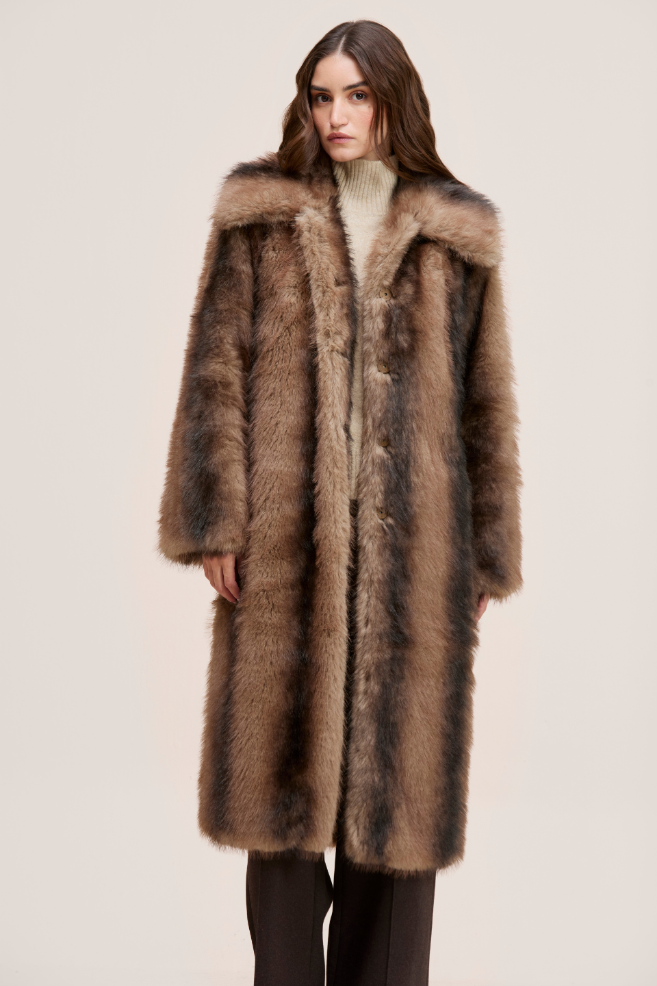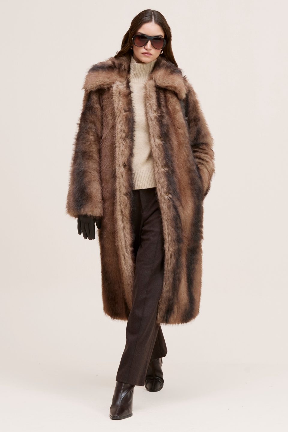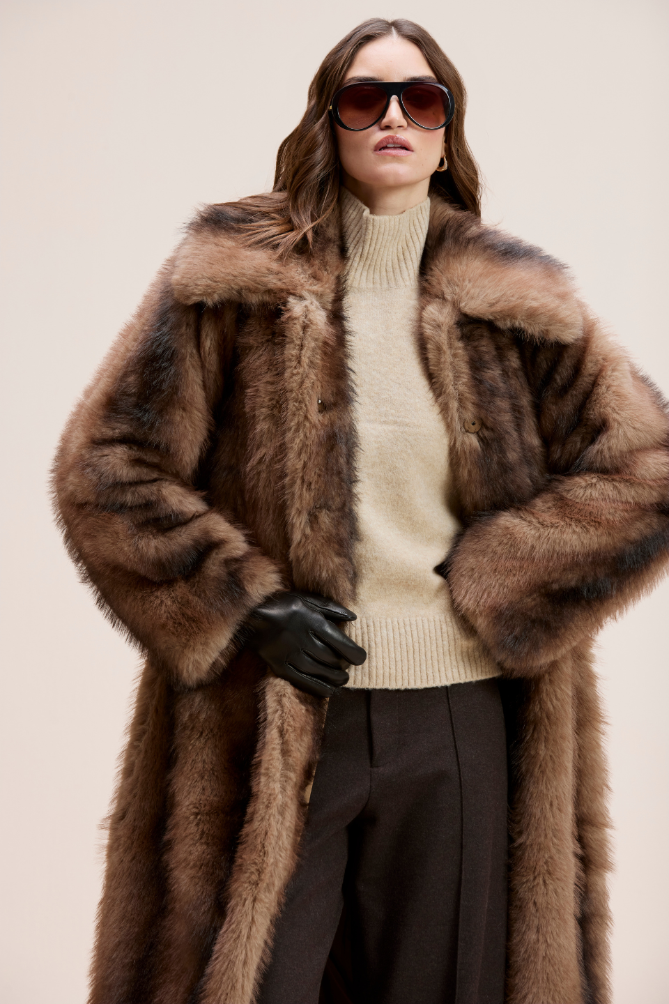 CALLIOPE. Wrap yourself in warmth and elegance with this statement oversized faux fur coat. It delivers rich texture, softness and a refined cold weather silhouette.
