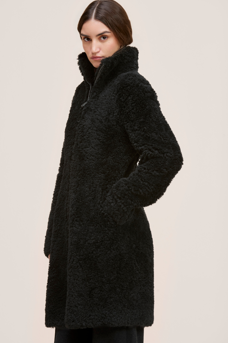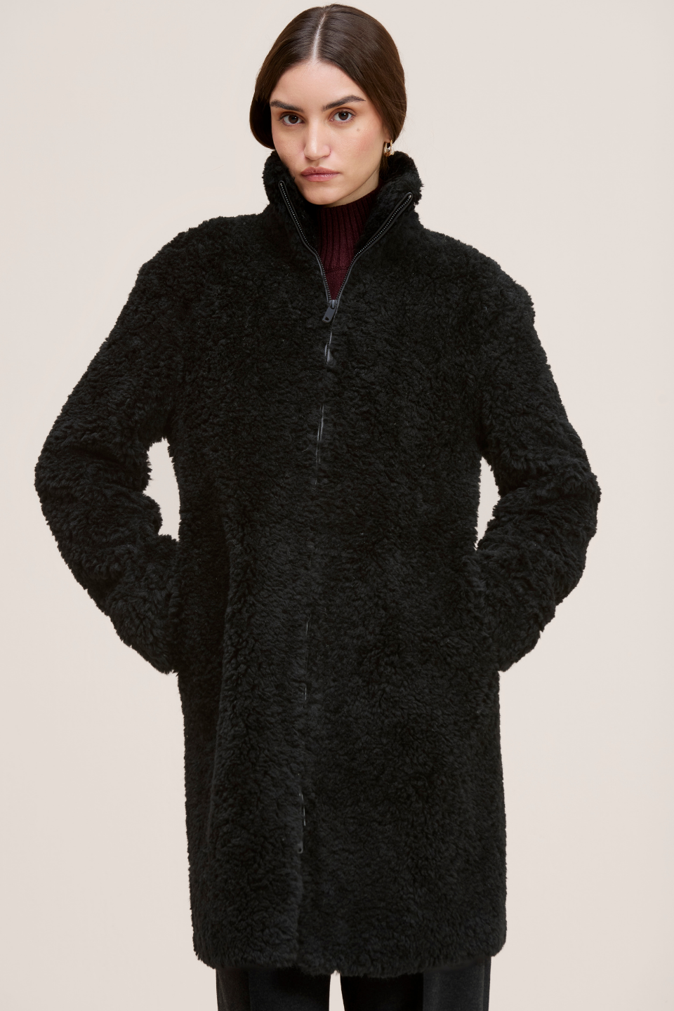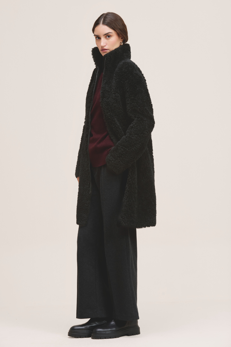 ELWENIA. Designed with a clean silhouette and two-way front zipper, it offers comfort and sophistication. Fully lined with discreet side pockets.