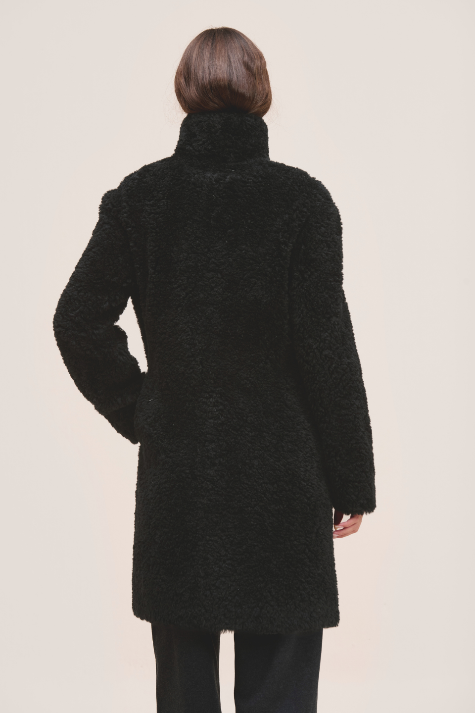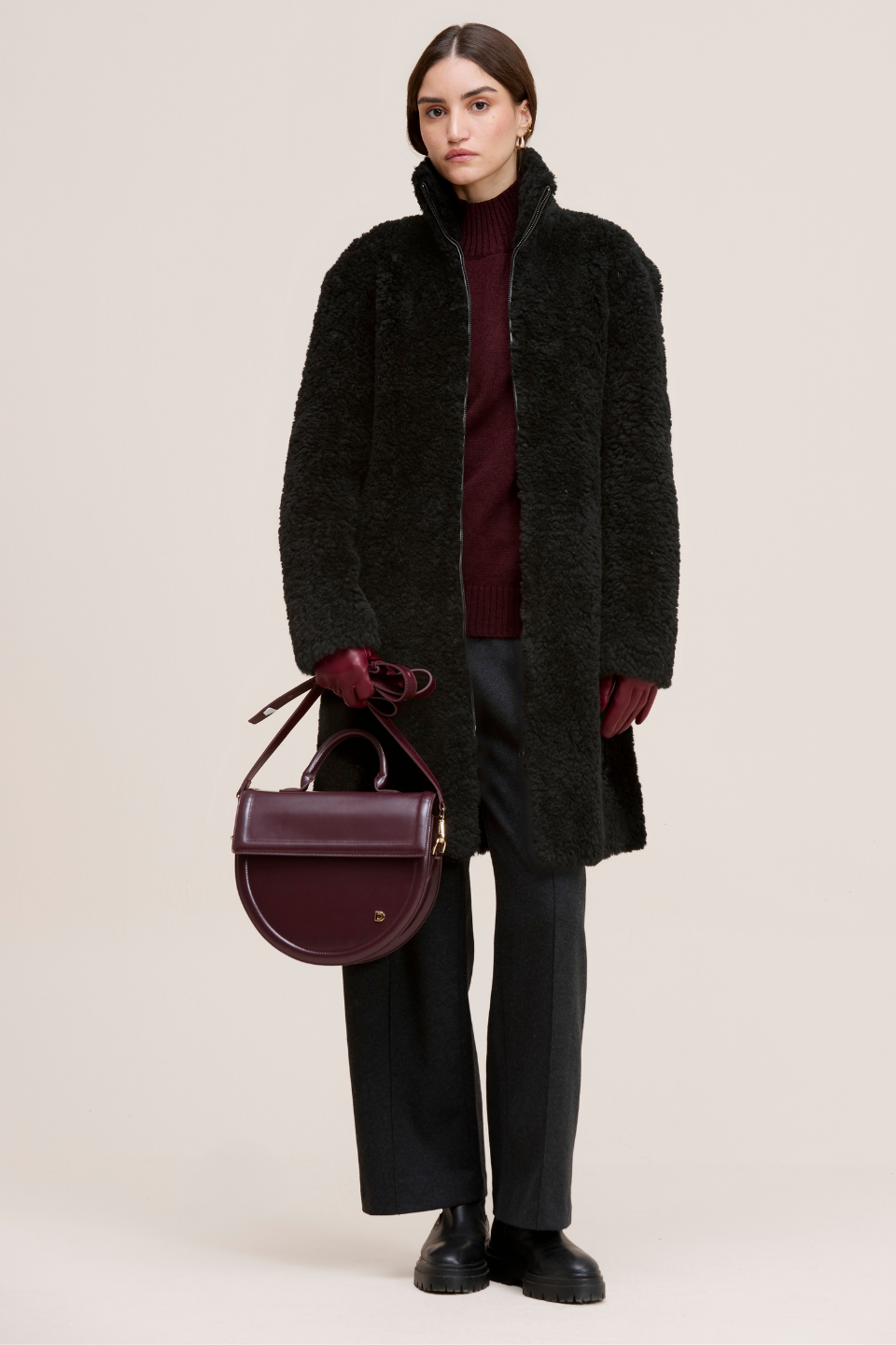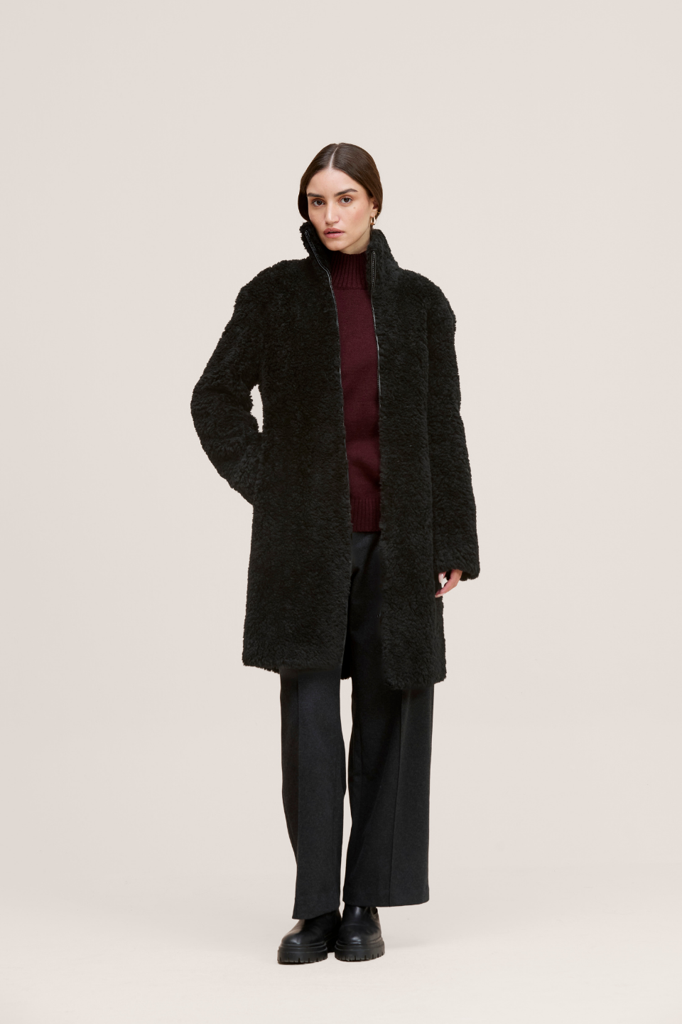 ELWENIA. Designed with a clean silhouette and two-way front zipper, it offers comfort and sophistication. Fully lined with discreet side pockets.