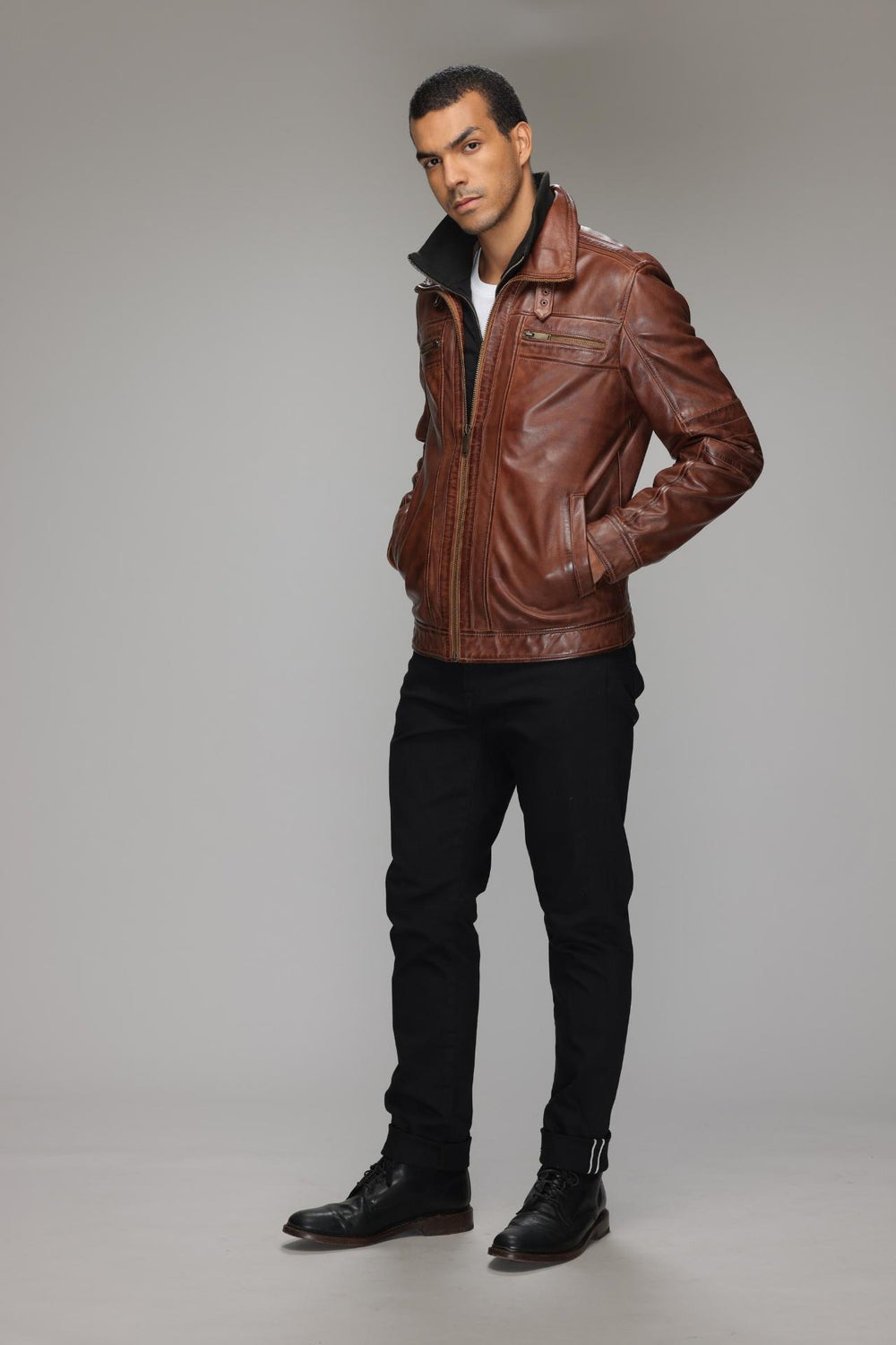 This Fall, our top-selling and versatile HAYDEN jacket returns, once again. Crafted in our premium lamb leather, the functional design of this style includes a zip-out knit bib that can be kept in or zipped out, as the weather dictates and a quilted liner, for added insulation on the coolest days. Additional features include zipped chest pockets, quilted elbow panels, front welt pockets and buckled collar closure. Handsome, versatile and styled for transitional Canadian seasons, HAYDEN will elevate your casual look to new standards.