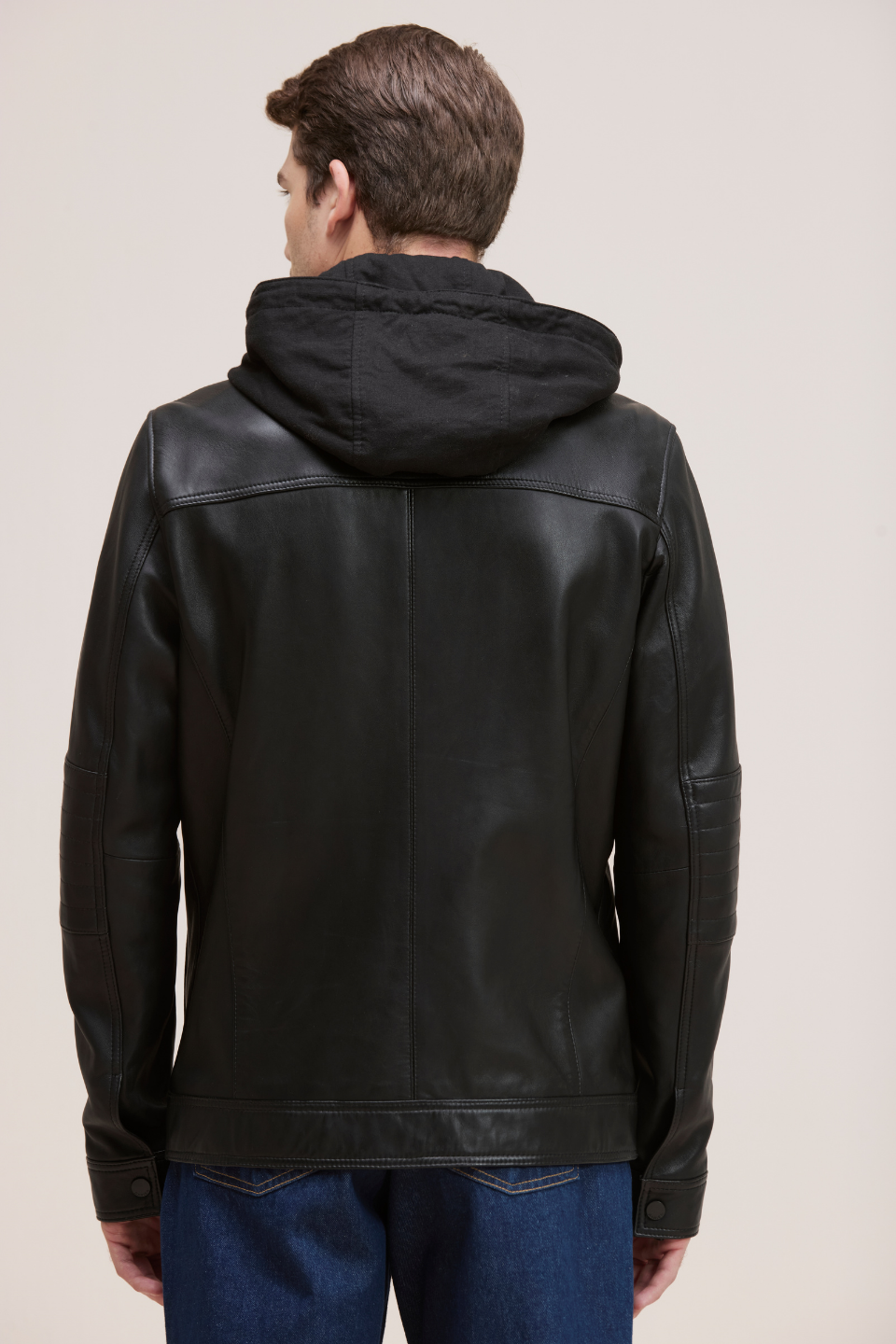 Expertly crafted in a lamb skin, this jacket features a zip-out hooded insert for duo styling versatility. With the hood a more casual effortless look, or zip off the hood insert and you get a more classic look. Detailed with chest and hand zippered pockets for security as well as three interior chest pockets. This sleek style is the ideal piece for smartening up both on and off-duty dressing.