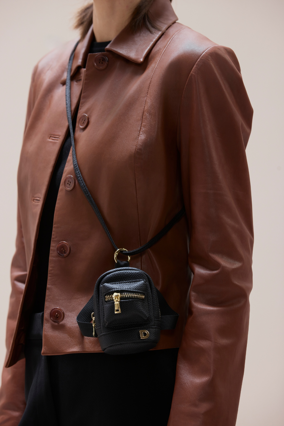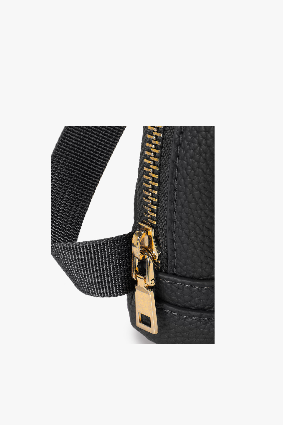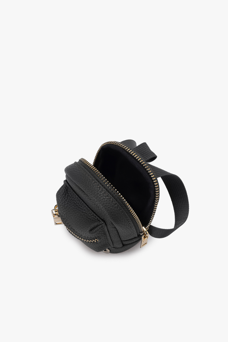 Playful, compact, and crafted in genuine pebble cowhide, the JIMENA MINIATURE brings a stylish twist to everyday tech essentials. Designed as a mini backpack, it features shiny gold hardware, a zippered front pocket, and miniature shoulder straps for a charming, elevated look.