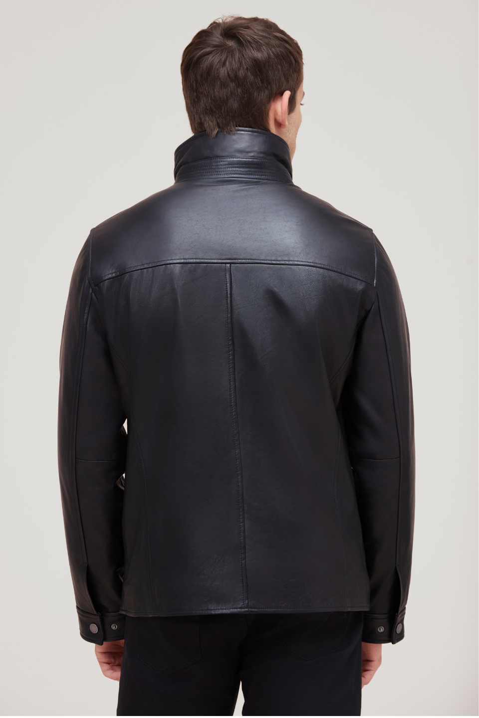 LANDON. Genuine lamb leather jacket includes details like three interior chest pockets, one with a zipper closure to keep your valuables safe, and a detachable quilted vest that can be worn on its own.