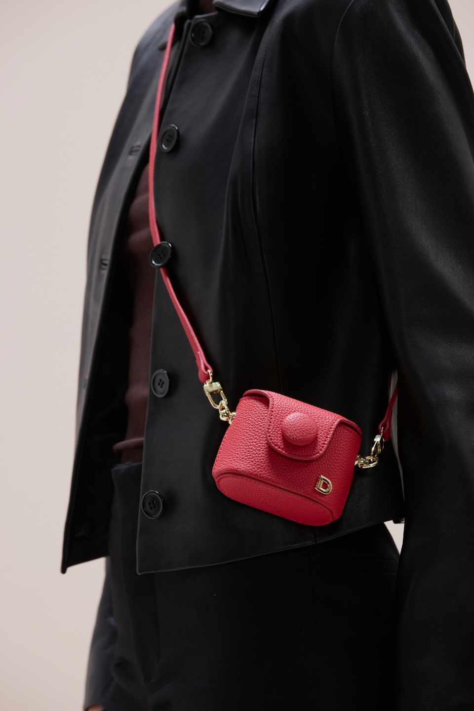 LEIA MINIATURE. Charming, compact, and crafted in 100% genuine pebbled the LEIA MINIATURE brings a modern twist to everyday accessorizing. Its structured square silhouette is complemented by shiny gold hardware and thoughtful details that elevate both style and function.
