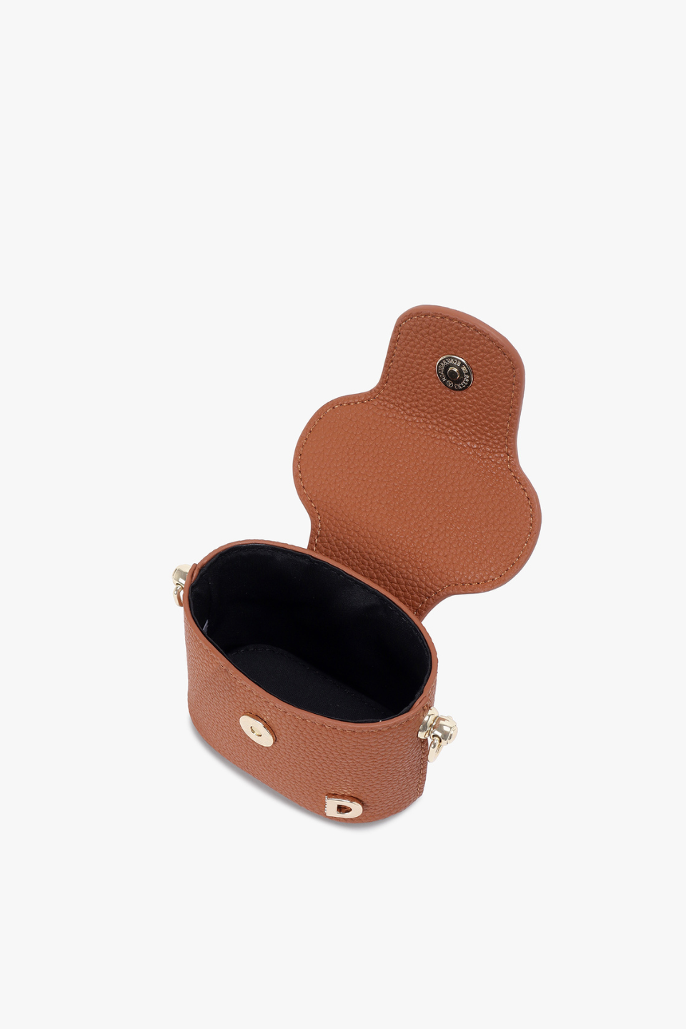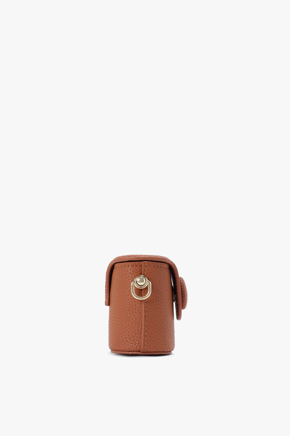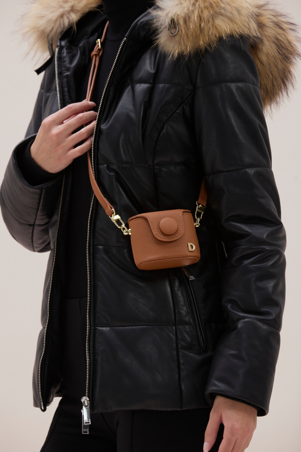 LEIA MINIATURE. Charming, compact, and crafted in 100% genuine pebbled the LEIA MINIATURE brings a modern twist to everyday accessorizing. Its structured square silhouette is complemented by shiny gold hardware and thoughtful details that elevate both style and function.