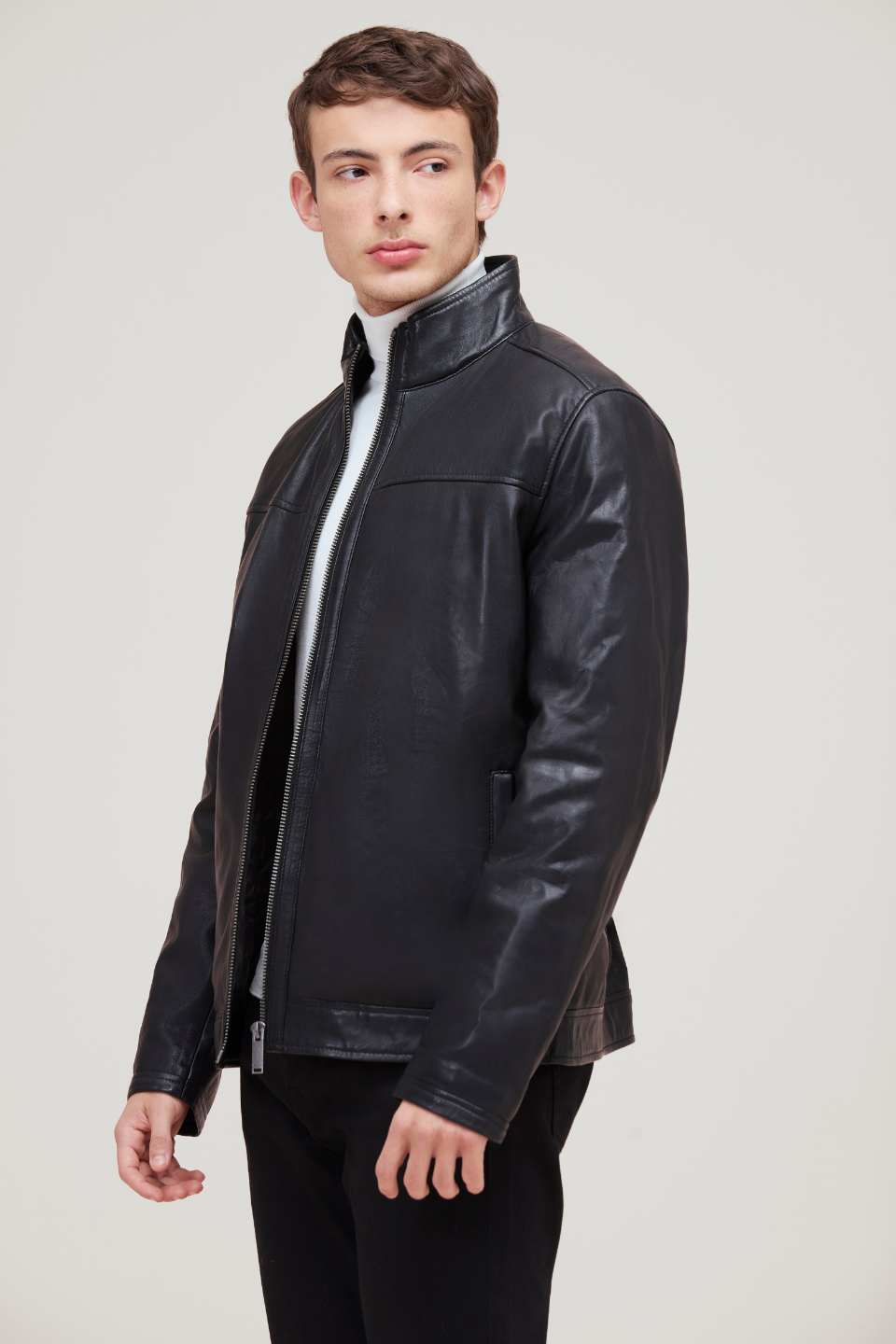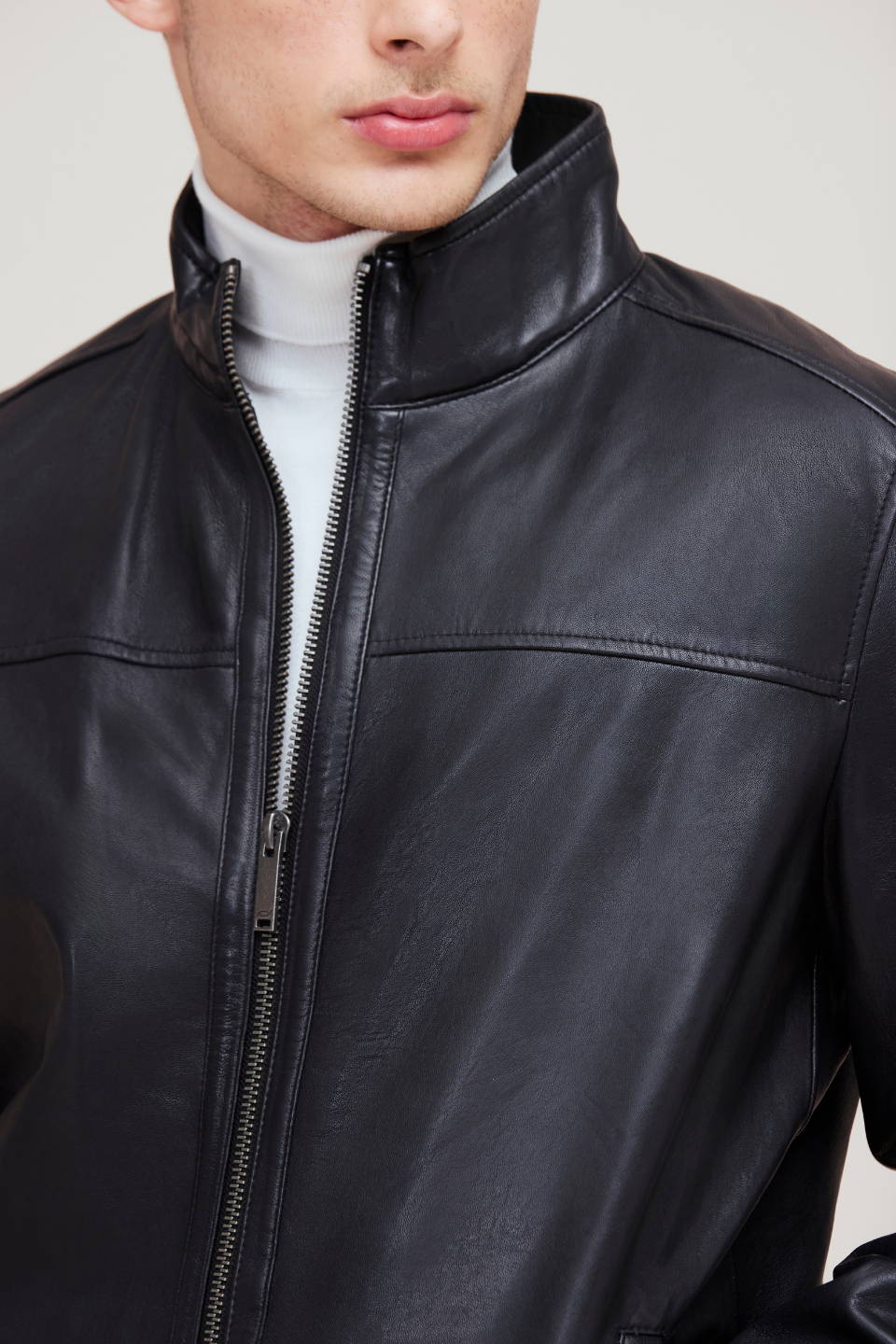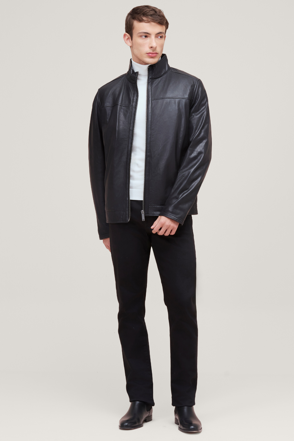 Contemporary design and timeless appeal define our NATE bomber jacket. Crafted from our signature lamb leather, this style transcends trends to become the ultimate investment piece. Features include a front zip closure, high stand collar, zippered welt pockets and banded waist. The slim-cut silhouette gives the jacket a modern look, while the lightly quilted liner provides an added layer of warmth. Business-casual or weekend-casual, this piece will easily cover all your wardrobe needs.