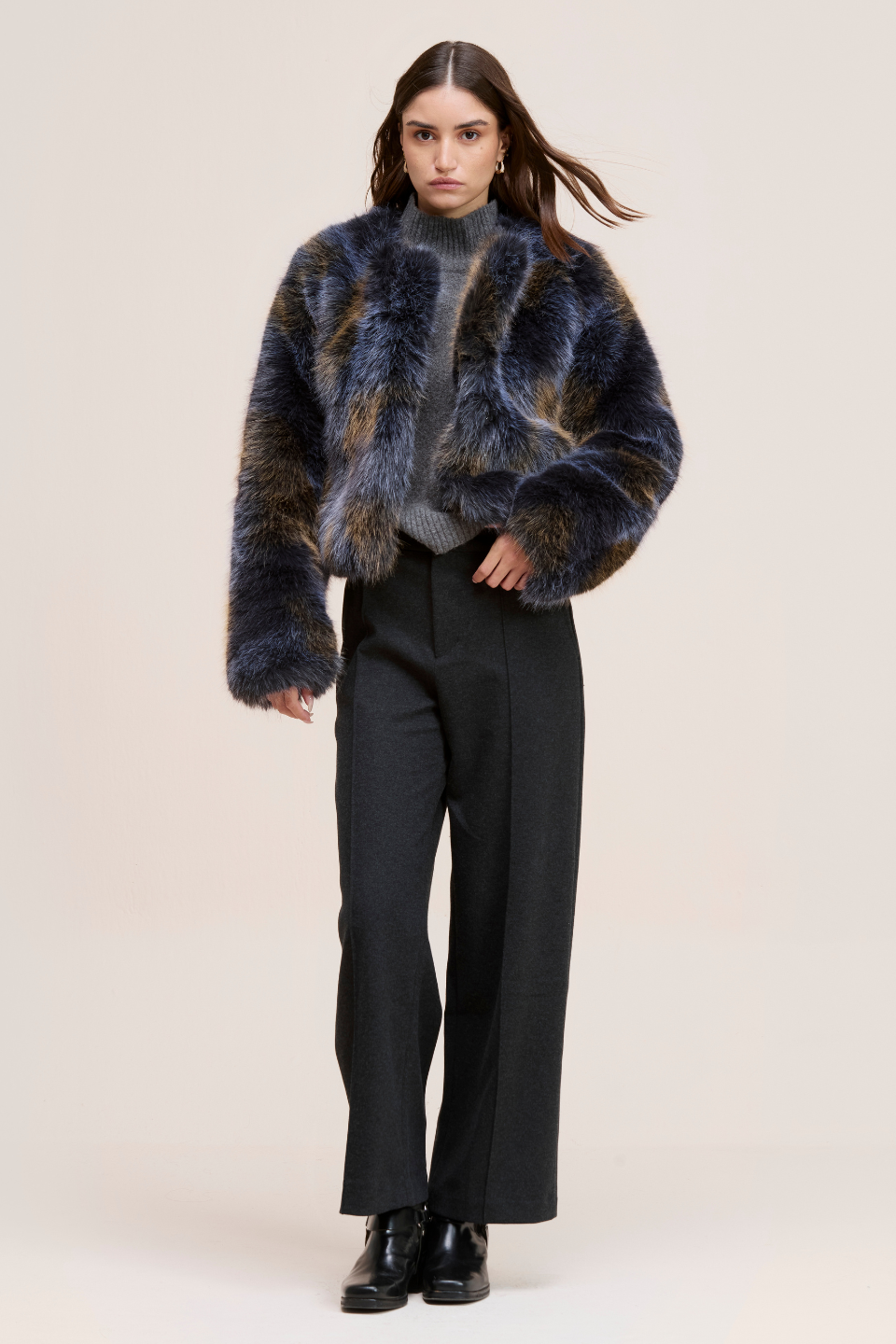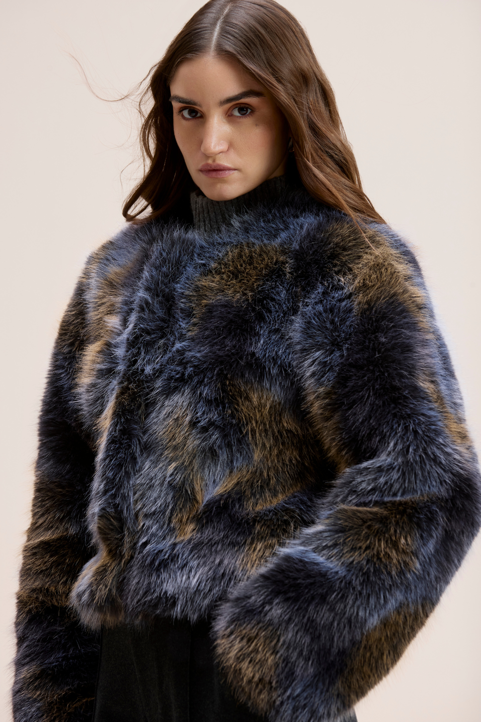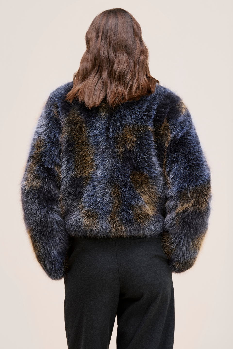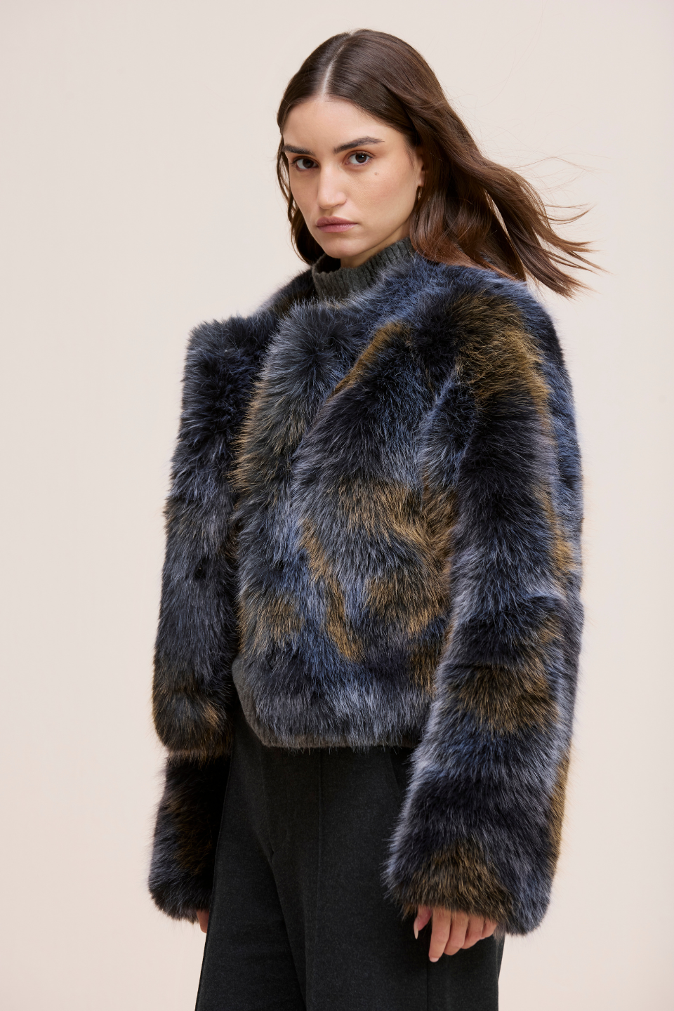 Plush, modern, and irresistibly soft. MAISIE jacket delivers standout texture with a refined, collarless silhouette. Crafted in faux fur with a blended tonal pattern, it adds instant sophistication to any cold-weather look.