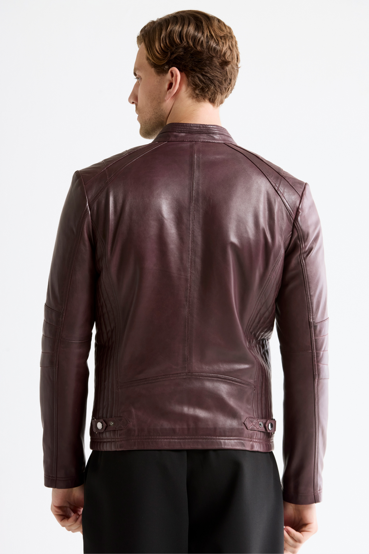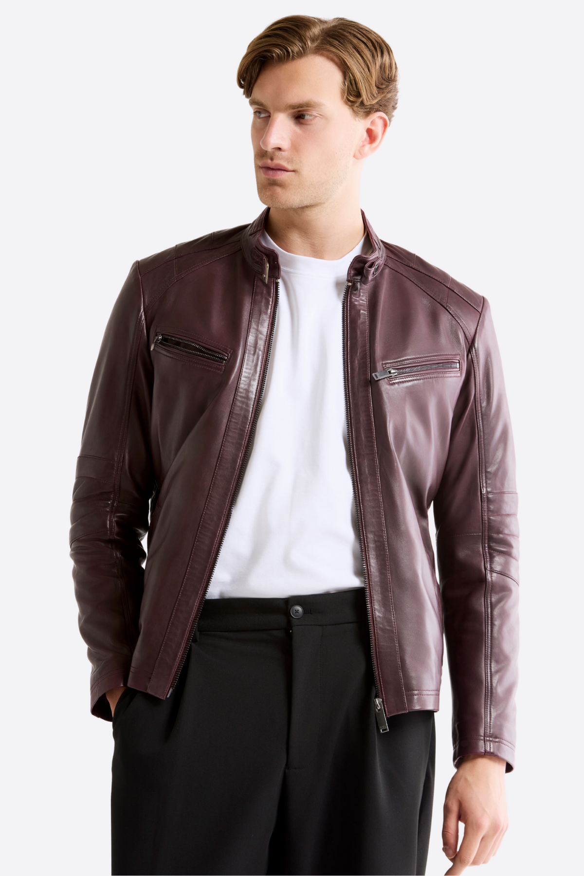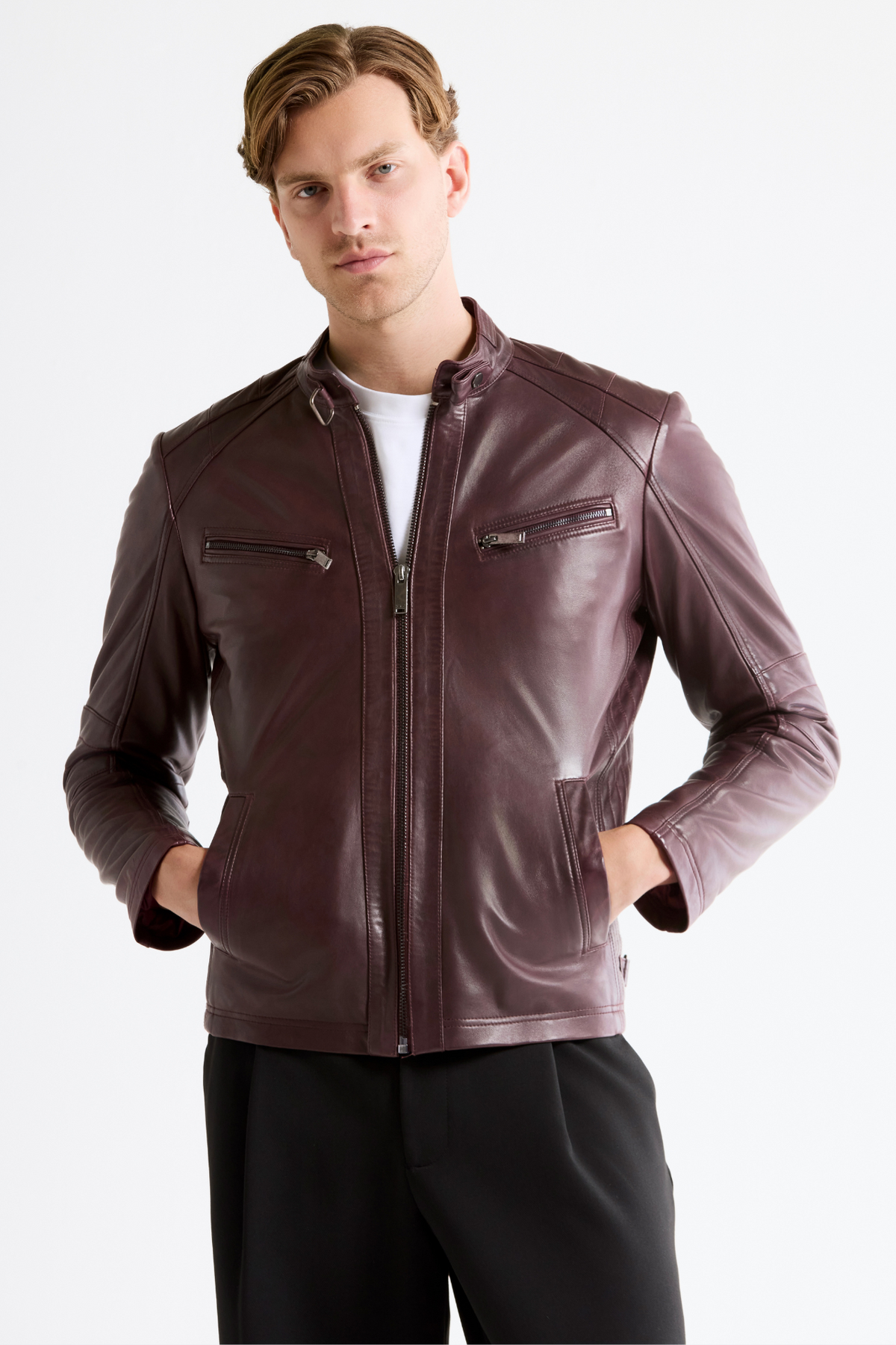This season, the perennial favorite racer jacket gets revamped, offering a fresh take on an age old classic. RONAN’s design features classic elbow and shoulder padding, zippered chest pockets, angled hip pockets and antique-finished hardware for an authentic, aged look. The slim cut flatters, while the tab neckband and zippered sleeve opening add both function and style. This style will elevate any casual look to a new standard.