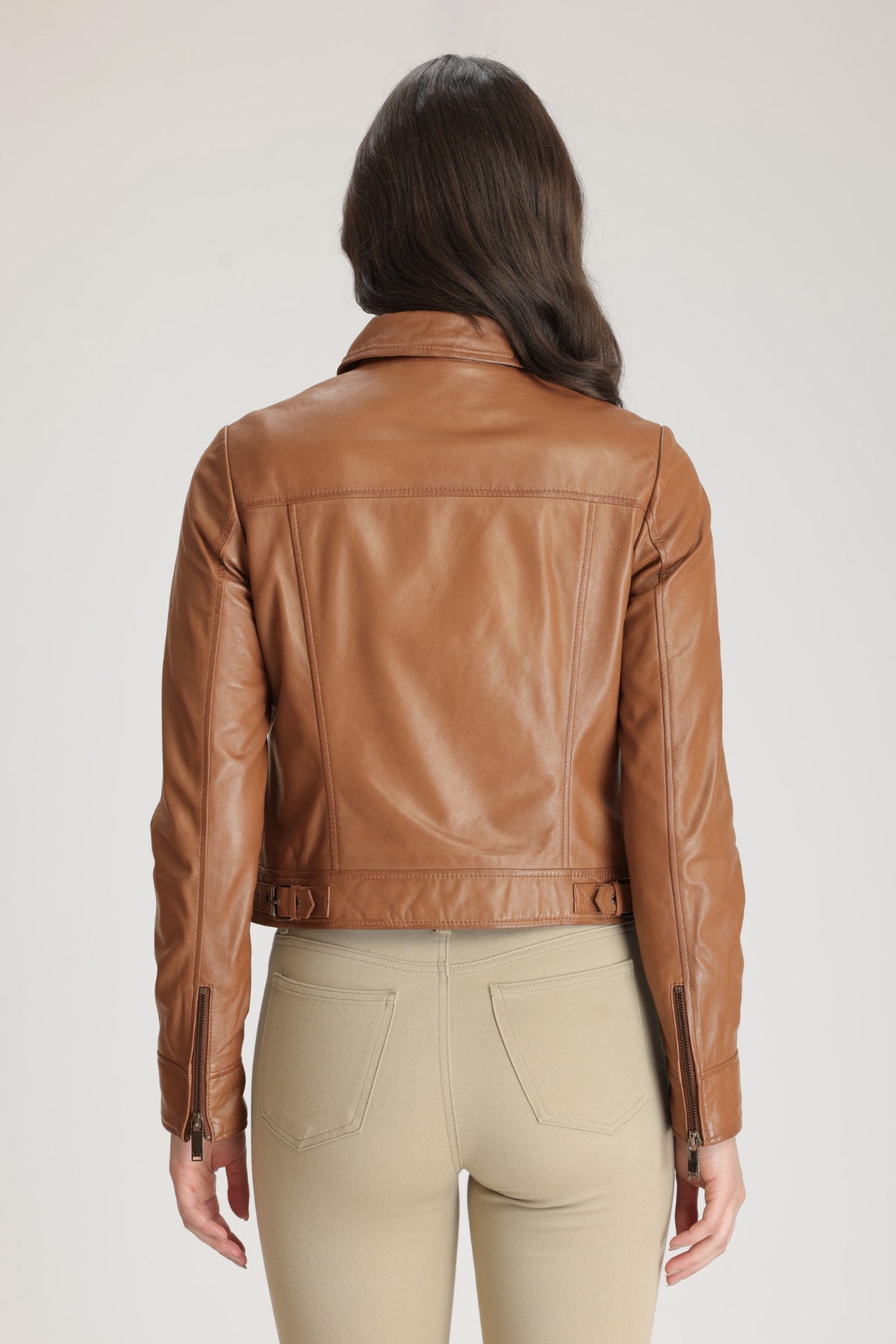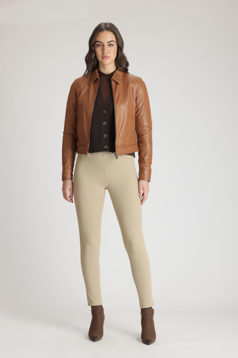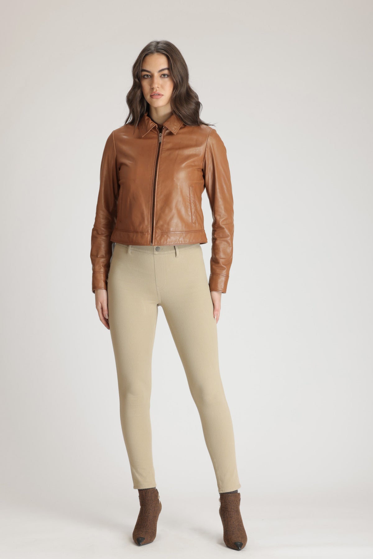A fine example of the commanding luxury for which Danier is renowned. TILLY, a classic shirt collar zip front jacket has been crafted in our iconic genuine lamb leather. Wear yours with all manner of casual look, or dress up with a turtleneck, long slim skirt and boots for an evening out.