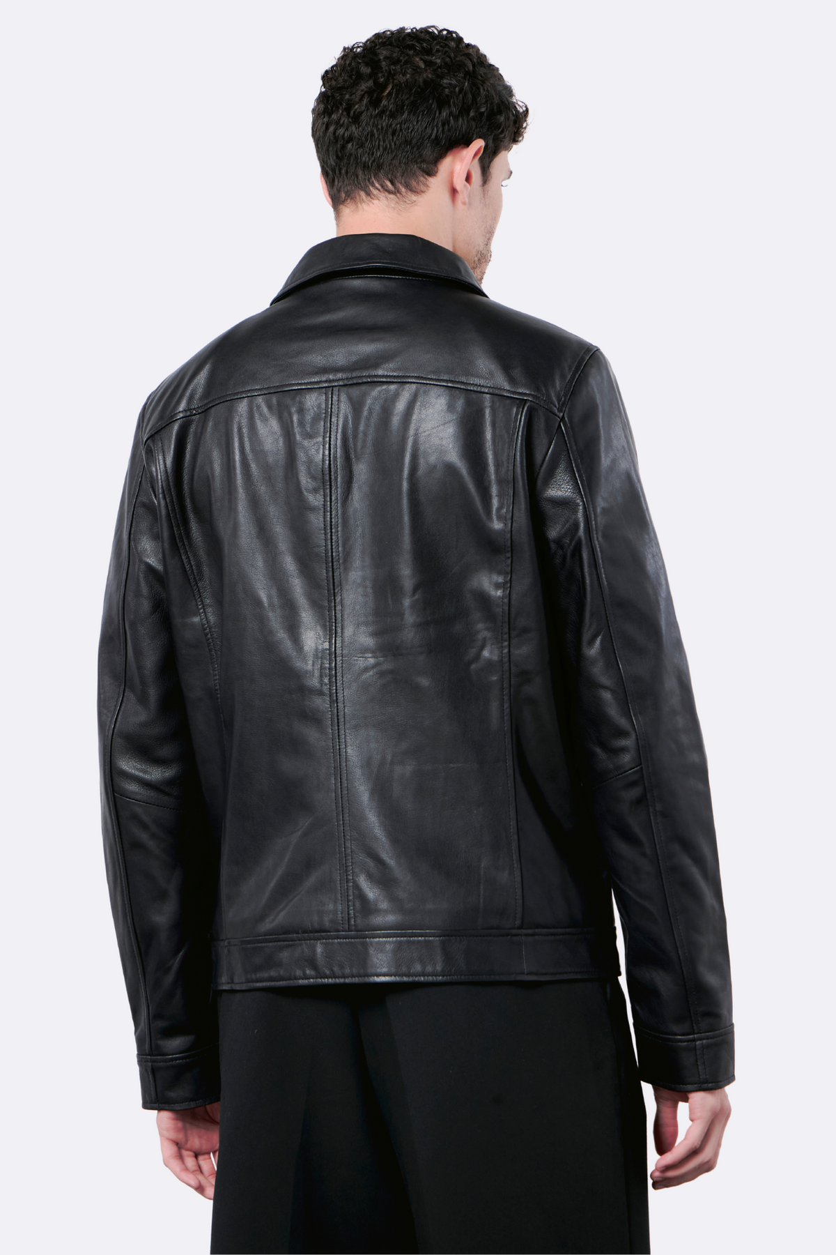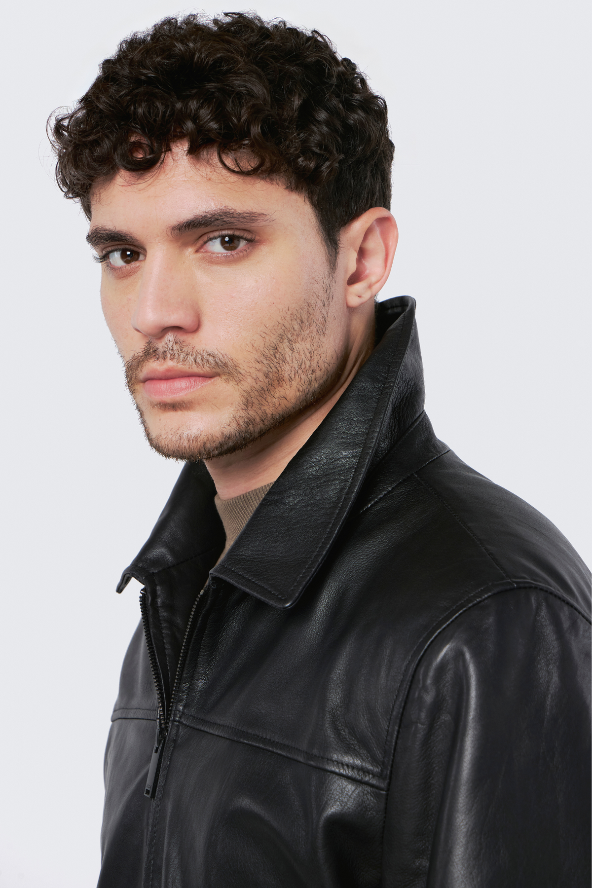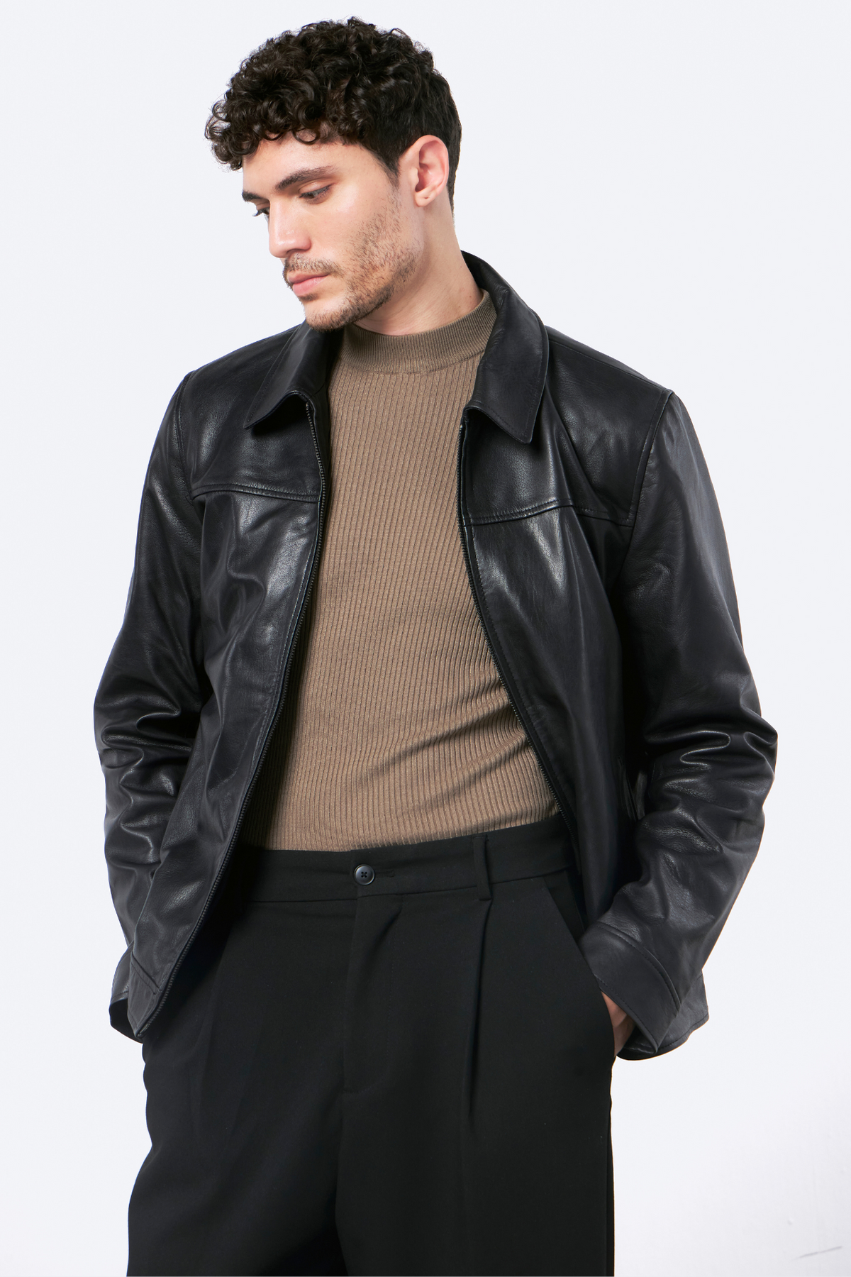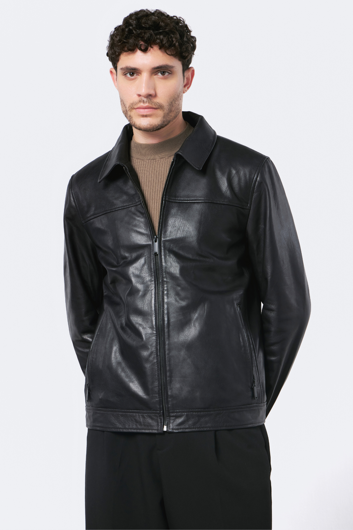 TYLER delivers a slim, tailored fit in supple lamb leather. A classic shirt collar frames the neckline, while a full-length zipper offers a clean front closure. Inside, three pockets keep essentials organized without bulk. Minimal in design, timeless in appeal.